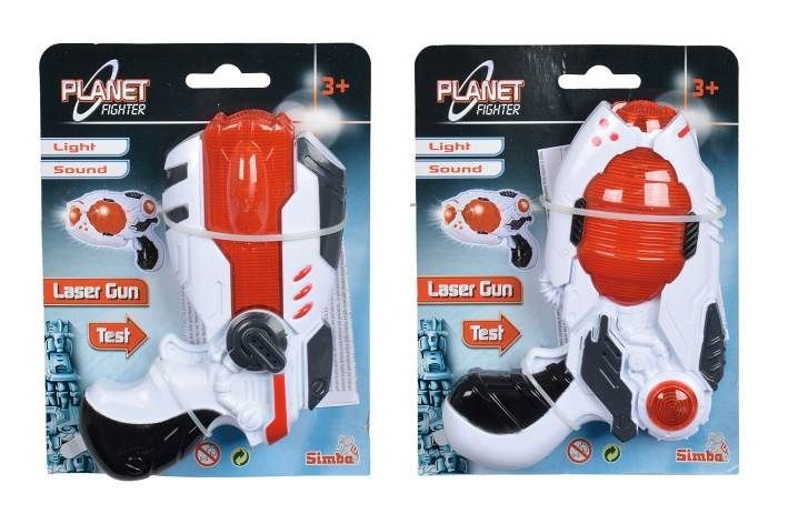 Zbraň Planet Fighter se zvukovým a světelným efektem. Délka 16 cm.