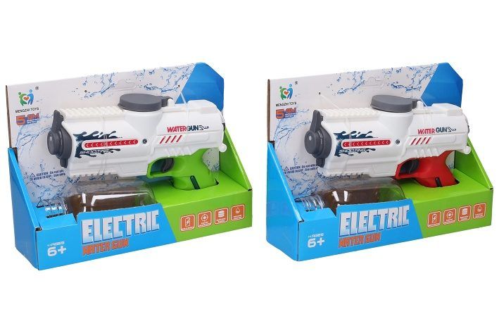 Pistole vodní elektrická. Velikost 18 cm. Zásobník na 200 ml. Dostřel 5 - 8 metrů. 1x3. 7V bateriový pack a USB nabíjecí kabel součástí, šroubováček na otevření krytky. 2 varianty - červená, zelená.