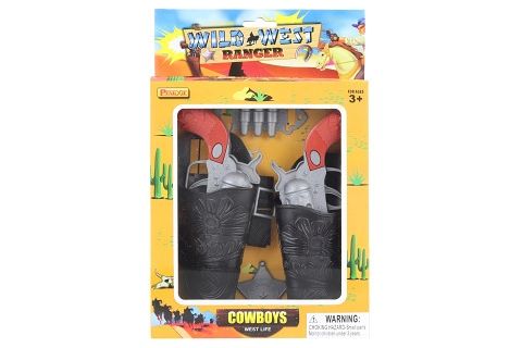 Sada pistolí western. Balení obsahuje 2 pistole, 2 pouzdra, odznak, opasek a náboje. Rozměry balení cca 18 x 27,5 x 3,5 cm. Věk 3+