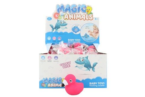 Svítící plameňák do vany. Obsahuje neměnitelné baterie. Rozměry cca 5,5 x 5 cm. Věk 3+