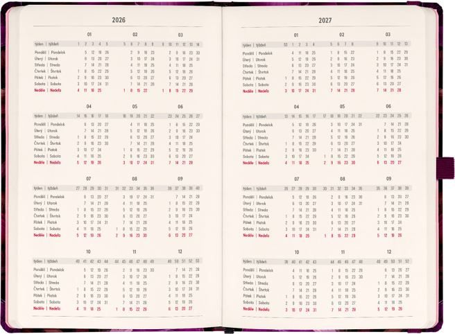 Planbook diář/notes Fialové květy 2026, 13 x 21 cm / PGD-35578-V