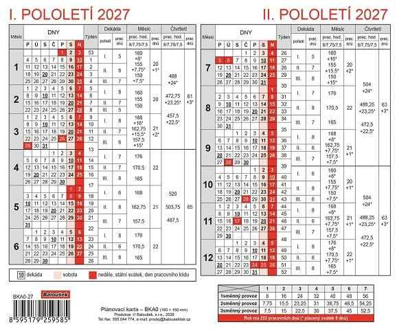 Plánovací karta 2027, 18cm x 15cm, BKA0-27