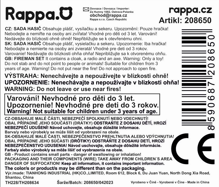 Balení obsahuje plášť, vysílačku, sekeru a odznak.