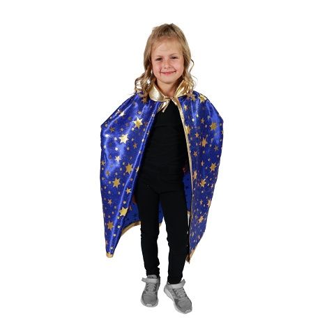 Kouzelný čarodějnický plášť! Tento magický kousek je určen pro všechny holky a kluky ve věkovém rozmezí 3-10 let (104-150 cm). Plášt na zavazování je dekorován zlatými hvězdičkami a lemováním. Délka pláště cca 75 cm.