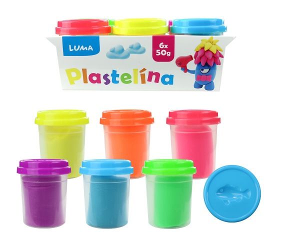 Plastelína LUMA měkká kelímek 6 x 50g NEON