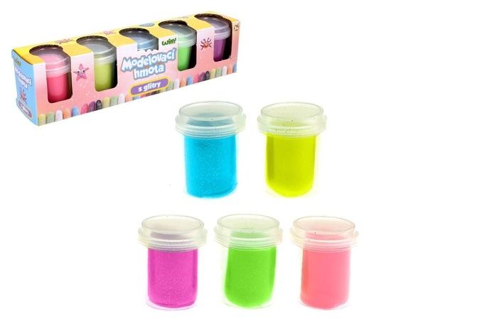 Plastelína/modelína s glitry 5x56g v kelímku v krabičce 27x7x6cm
