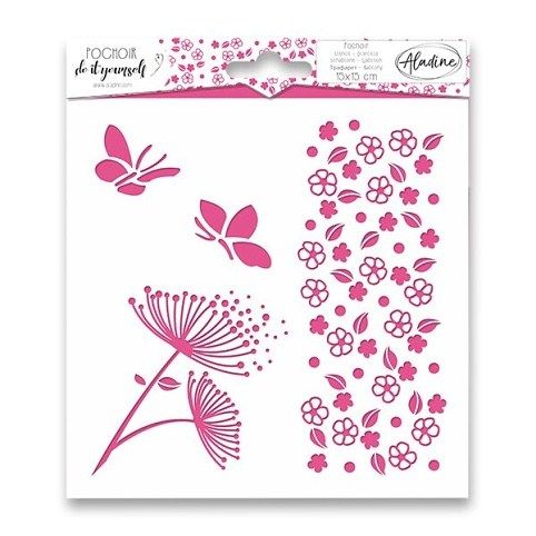Plastová šablona AladinE - Pochoir Textile - Kytičky - 15 x 15 cm