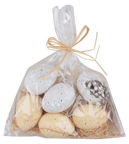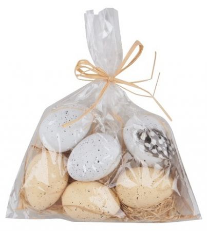 Plastová vajíčka s pírky 4 cm, 6 ks