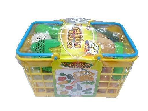 Košík nákupní z plastu, který obsahuje 20 kusů plastových potravin