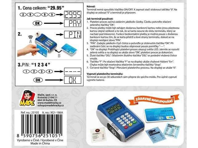 Platební terminál je moderní zařízení, které vám umožní pohodlně a bezpečně provádět platby. S kompaktními rozměry 17 x 14 x 6,5 cm se snadno vejde do každé kapsy nebo tašky. Díky použití plastového materiálu je lehký a odolný zároveň. Platební terminál je určen pro širokou skupinu uživatelů od 3 let výše a je napájen třemi bateriemi typu AAA, které nejsou součástí balení. S tímto terminálem můžete provádět platby kdykoliv a kdekoli, což ho činí skvělým společníkem pro každodenní použití.