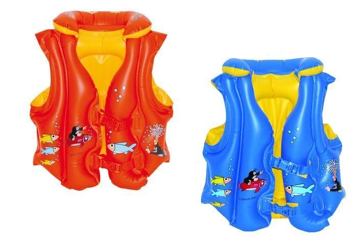 Dětská plavací vesta s motivy Krtečka a jeho kamarádů je skladná, bezpečná, snadno se nafukuje a vyfukuje. Je bez ftalátů a s bezpečnostními ventily. Děti mohou využít vestičku buď ke hře ve vodě nebo k výuce plavání.