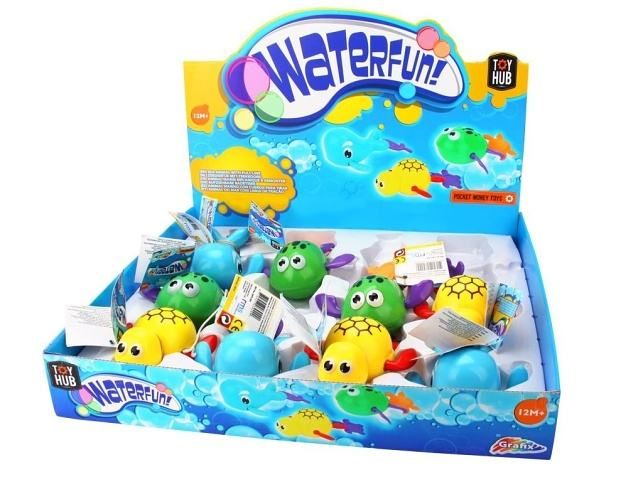 Plavací zvířátka natahovací do vany nebo do bazénu. Zvířátka ponatažení plavou. 3 druhy – želva, žabička a rybička.
