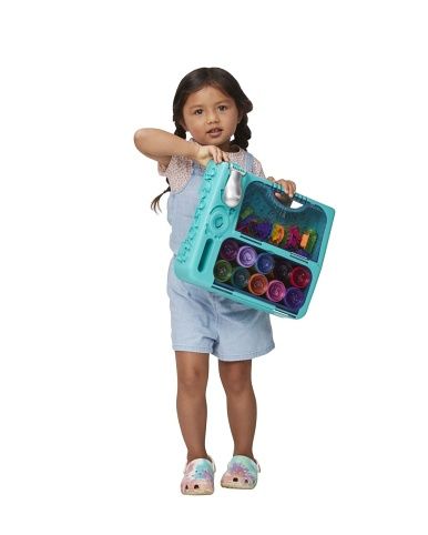 V téhle univerzální sadě na cesty čeká děti spousta doplňků a klasické Play-Doh kelímky s modelovací hmotou! Najdete zde Továrnu na zábavu a Kadeřnictví, spoustu vykrajovátek a nejrůznějších vychytávek, tak se nebojte popustit uzdu fantazii. Na vše je zde spousta prostoru, takže kelímky s modelínou můžete dát do připravených otvorů, tvořítka a vykrajovátka do zásobníku, na němž je kryt s texturou, se kterým si užijete spoustu zábavy při vytváření parádních vzorů. Kompletní balení je praktické, vejde se vám do něj všechno potřebné a díky kompaktní rukojeti si ho můžete vzít pohodlně na cesty a zpestřit si tak víkend třeba u babičky!
