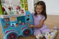 Zmrzlinááá! Je tady zmrzlinááá! Vaše děti se s tímhle Play-Doh zmrzlinářským vozíkem v životní velikosti vžijí do role kreativních zmrzlinářů! Výroba a zdobení všech těchto zmrzlinových Play-Doh pochoutek (včetně točené zmrzky v obřím kornoutu) půjde díky více než 25 různým doplňkům hezky od ruky a zákazníci vám můžou ihned zaplatit díky vestavěné pokladně. Svoje nejlepší výtvory si neváhejte vystavit. Hezkou atmosféru vyvolá klasická melodie zmrzlinářského vozíku a další zábavné zvukové efekty. Součástí vozíku jsou poličky a úložný prostor, kde je možné odložit všechny nástroje a přebytečné vybavení, a modelínu můžete pohodlně smést do žlábku pro další použití. Zmrzlinááá!