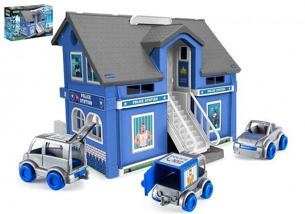 Play House - Policejní stanice plast + 3ks auta + 1ks helikoptéra v krabici 59x39x15cm