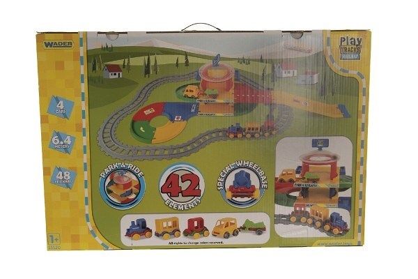 Play Tracks - vlak s kolejemi plast 4ks autíček,délka dráhy 6,4m s doplňky v krabici 80x53