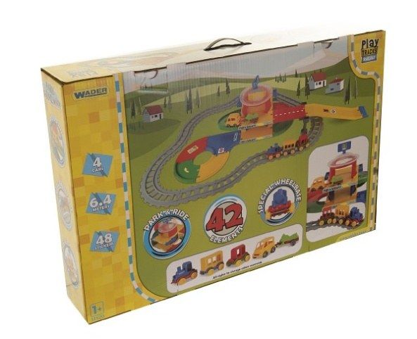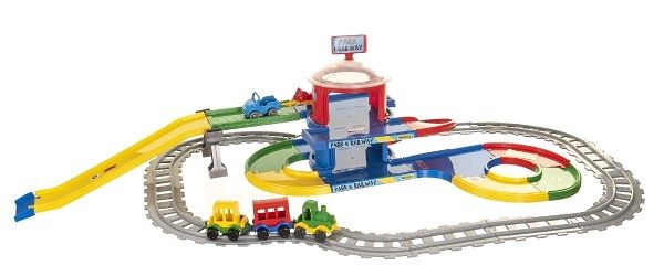 Tento malý set potěší každého malého řidiče a milovníka vláčků/autíček. Souprava sestává z železničních tratí a silnic s celkovou délkou 640 cm, dvouúrovňové garáže a dráhy, 4 vozidel a 42 doplňků - nálepky, podpěry apod. Veškeré příslušenství je vyrobeno z velice kvalitního plastu, který je odolný vůči mechanickému poškození. Výhodou tohoto produktu je barevný, lehký a snadno sestavitelný design a množství prvků, díky kterým je stavba mnohem zajímavější a poutavější. Dráha je též kompatibilní s autíčky Kid Cars Sport.