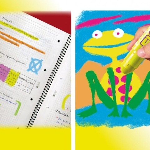 Pro snadný a čistý způsob malování na papír, karton, dřevo, atd. Okamžitá aplikace bez potřeby vody a štětců. Šetří čas. Velmi praktické, čisté a omyvatelné. Ochranná glazura není nezbytná. Vysoká krycí schopnost. Rychleschnoucí. Nevrásčí papír. Bez obsahu rozpouštědel. Snadné použití. Není vhodné pro děti mladší 36 měsíců, protože obsahuje malé části. Odkaz na