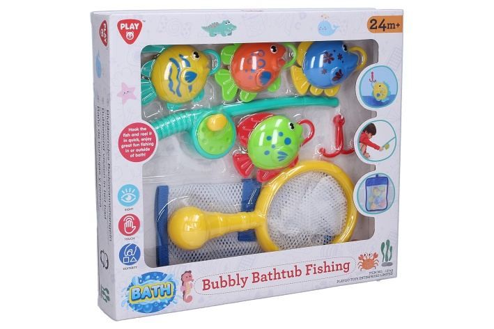Chytání ryb do vany. Velikost udice 25 cm. Obsah - síťka, udice, 4 ryby, síťovaná taška.