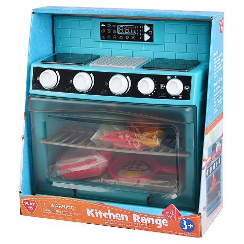 Trouba s efekty. Velikost 29 cm. Obsahuje troubu, jídlo a nádobí. Baterie 2xAA součástí. Otáčením knoflíků se zapínají jednotlivé plotýnky- vydávají zvuk a svítí. Šipkami se nastavuje čas a otočný kolečkem se trouba zapne, rozsvítí se červeně. Po odpočtu zazní signál a trouba se zhasne. Čísla po chvíli zhasnou.