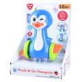 Tučňák. Velikost 13 cm. Natahovací - natažení zatlačením hlavy směrem dolů. Po uvolnění hlavy se tučňák rozjede.