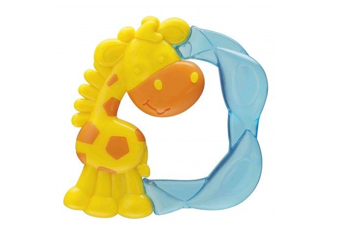 Chladící kousátko s žirafou. Plastové kousací části děti zklidní a díky svému tvaru pomáhají masírovat dásně v období růstu zoubků. Rozměry kousátka cca 10 x 10 cm. Chladit pouze v ledničce, nezmrazovat. Rozměry balení cca 17 x 14 cm.