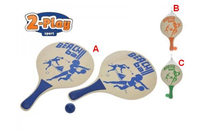 Plážová sada pálky 2-Play dřevěné 2ks 3 druhy