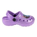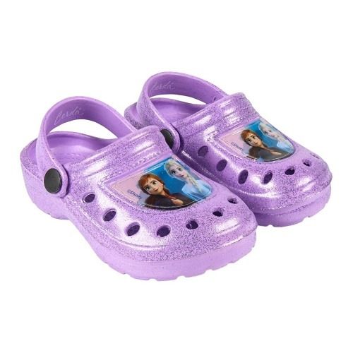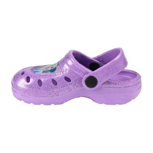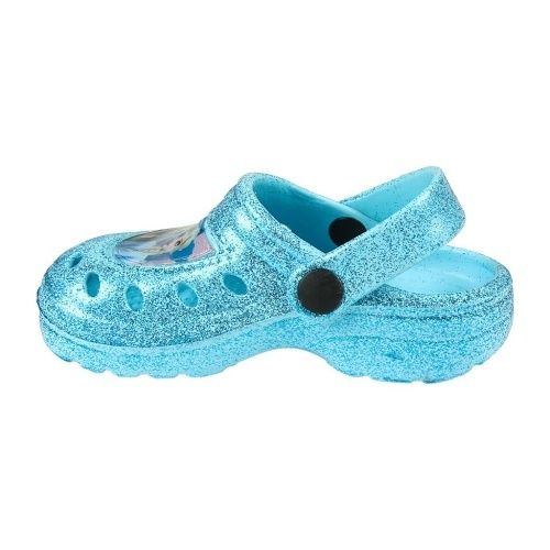 Plážové Clogs Prémium Ledové království třpytivé v modré a fialové barvě. Velikost 27–33. Materiál EVA. Vyrobeno ve Španělsku.