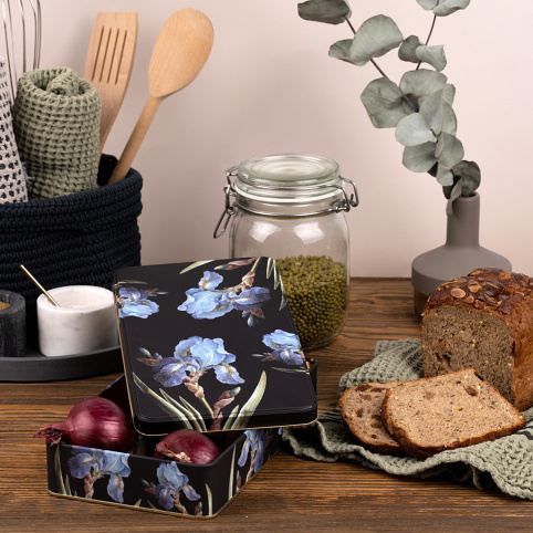 Stylová dóza z kolekce Kateřiny Winterové s vyobrazením kosatce má všestranné praktické využití. Můžete do ní uložit cukroví či jiné potraviny, nejrůznější poklady a další domácí drobnosti. Dóza je vyrobena ze 100% oceli s cínovou vrstvou.