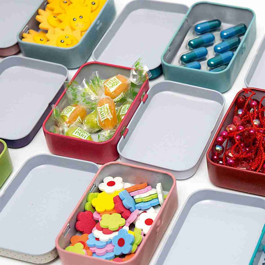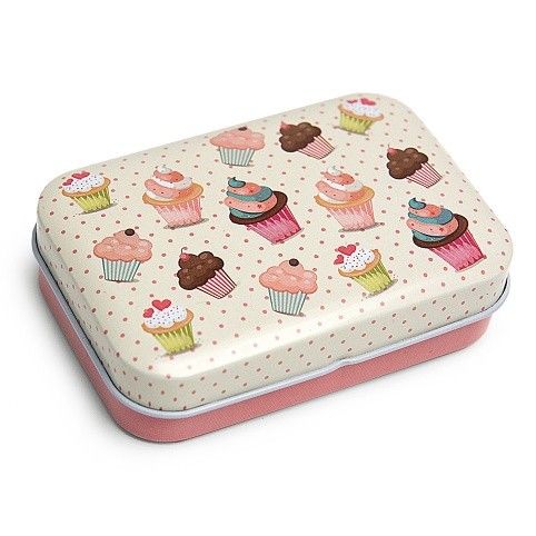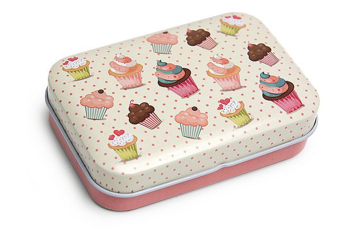 Plechová krabička s odklápěcím víkem na pant a potiskem. Vhodná pro různé drobnosti v domácnosti ale i jako malý dárek.