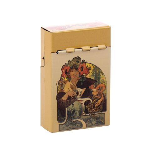 Plechová krabička na cigarety Alfons Mucha- Bieres, 9,5 x 6 x 2,7 cm