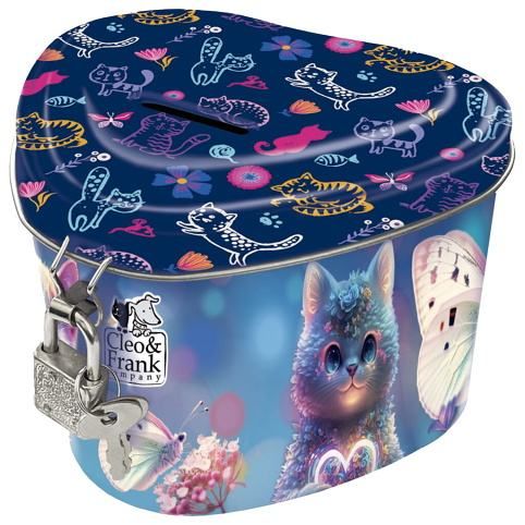 Plechová pokladnička se zámkem srdce - Cleo a Frank