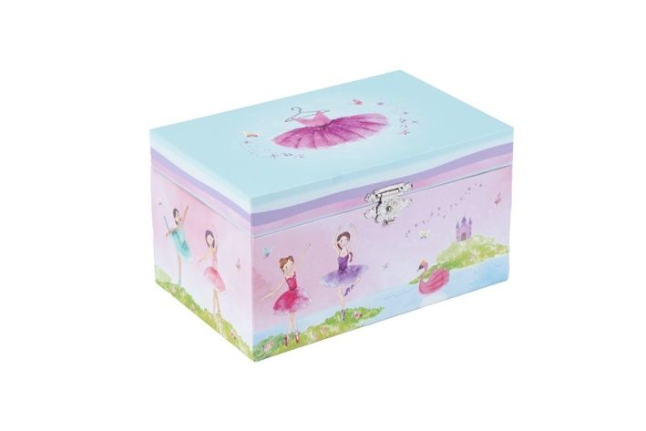 Hrací skříňka s baletkou, která se točí. Skříňka po otevření hraje a baletka se točí. Vyrobeno z tvrdého odolného papíru.