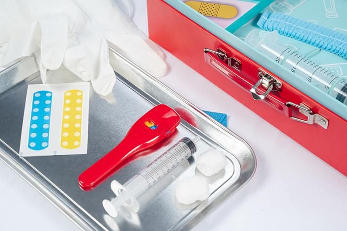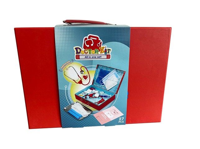 kufřík 27 kusů . Velké příslušenství, které potřebuje každý lékař. Funkční stetoskop, náplasti, injekce....