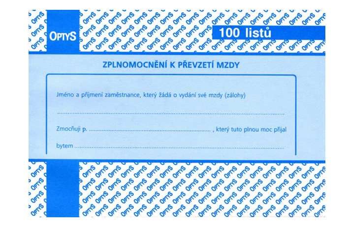 Plná moc k převzetí mzdy 100 listů A6 OPTYS