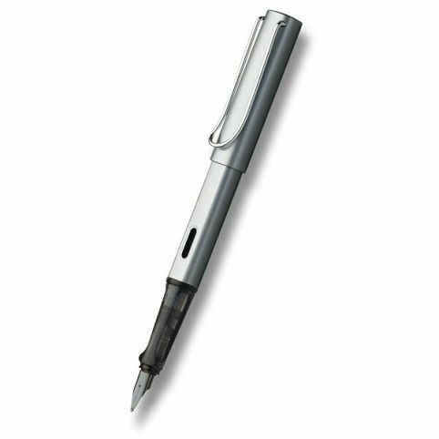 Lamy Al-star - tělo vyrobené z hliníku dává psaní lehkost. Plnicí pero: ergonomicky upravená transparentní úchopová zóna odpružený kovový klip nasazovací víčko hrot z nerezové oceli v černé barvě možnost použití jak inkoustových bombiček, tak i plnění pera inkoustem z lahvičky Dodáváno s modrou bombičkou.