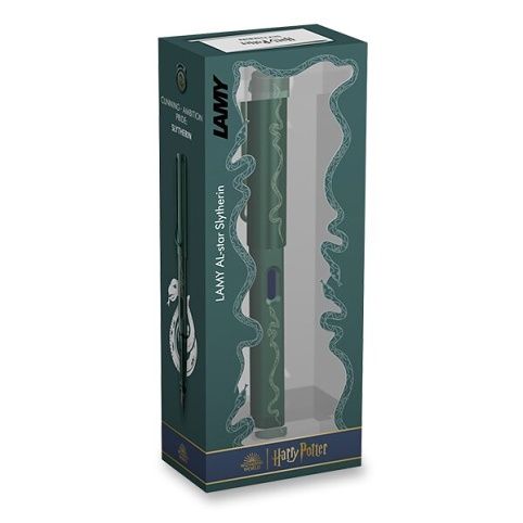 Plnicí pero Lamy Al-star Harry Potter Slytherin je atraktivní psací nástroj, který kombinuje funkčnost s jedinečným designem inspirovaným zelenou barvou a symbolem hada, který reprezentuje kolej Slytherin(Zmijozel) z filmů Harry Potter. Tělo pera je vyrobeno z odolného eloxovaného hliníku, což dodává psaní lehkost. Klip a hrot jsou vyrobené z nerezové oceli. Lamy Al-star je ideálním doplňkem pro každého fanouška Harryho Pottera, který ocení spojení tradice a moderního designu.