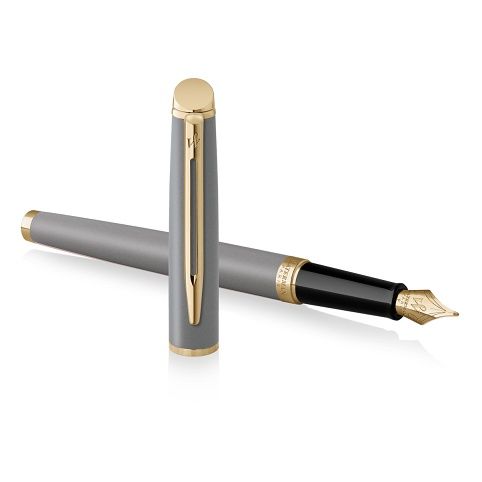 Plnicí pero Waterman Hémisphére The Understated Edit Stone Grey GT s tělem a víčkem z nerezové oceli povrchově upravené metalickým lakem v barvě stone grey. V kombinaci s doplňky potaženými světlým zlatem a úchopovou částí z černé pryskyřice. Hrot z nerezové oceli potažený světlým zlatem se zdobnou rytinou.
