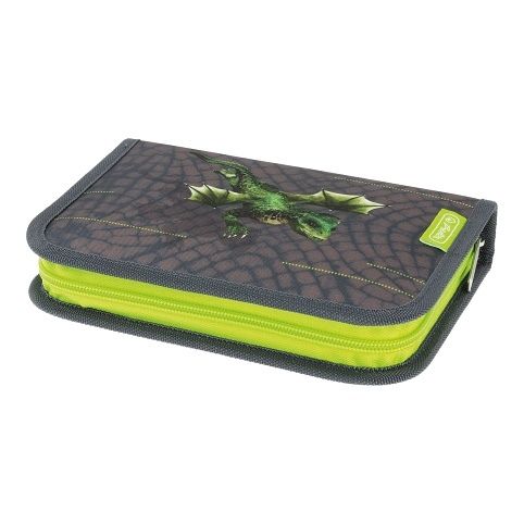 20,3 x 14 x 3,5 cm, 31 dílů - 14 fixů, 8 šestihranných pastelek, 2 tužky, ořezávátko, guma, 16 cm pravítko, trojúhelník, kuličkové pero, rozvrh hodin, vizitka, materiál: polyester