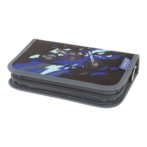 20,3 x 14 x 3,5 cm, 31 dílů - 14 fixů, 8 šestihranných pastelek, 2 tužky, ořezávátko, guma, 16 cm pravítko, trojúhelník, kuličkové pero, rozvrh hodin, vizitka, materiál: polyester