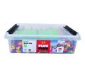 Praktický úložný box obsahuje celkem 4000 dílků Plus-Plus v základních barvách a 12 zelených podložek. Součástí je i brožura s konkrétními zadáními a úkoly pro děti. Vyrobeno v Dánsku, bez ftalátů, recyklovaný plast, snadná údržba. Rozměr boxu 40×30×12 cm. Ideální pro kolektivy. Vhodné od 5 let.