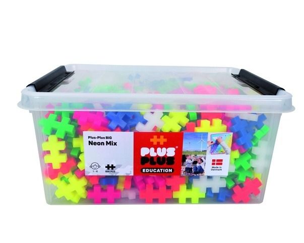 Praktický úložný box obsahuje 600 BIG dílků Plus-Plus v neonových barvách. Součástí je i brožura s konkrétními zadáními a úkoly pro děti. Vyrobeno v Dánsku, bez ftalátů, recyklovaný plast, snadná údržba. Rozměr boxu 40×30×19 cm. Ideální pro kolektivy. Vhodné již od 1 roku.
