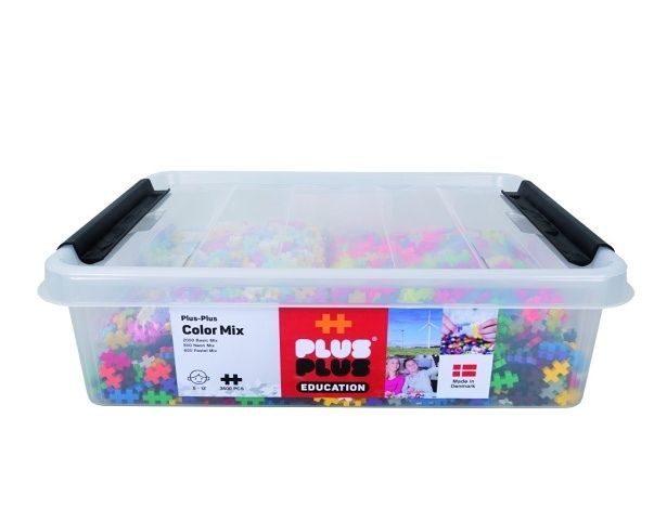 Praktický úložný box obsahuje celkem 3600 dílků Plus-Plus. Z toho 2000 dílků v základních barvách, 800 dílků v neonových barvách a 800 dílků v pastelových barvách. Součástí je i brožura s konkrétními zadáními a úkoly pro děti. Vyrobeno v Dánsku, bez ftalátů, recyklovaný plast, snadná údržba. Rozměr boxu 40×30×13 cm. Ideální pro kolektivy. Vhodné od 5 let.