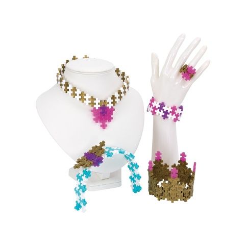 Kreativní sada PLUS-PLUS Šperky obsahuje celkem 220 dílků. Součástí je návod na výrobu krásných šperků mimo jiné ve zlaté, růžové a fialové třpytivé barvě. Použijte svou fantazii a postavte i další Plus-Plus designy!