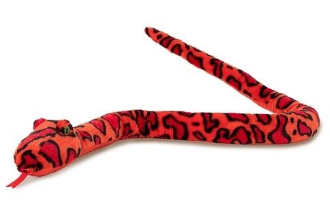 Plyšový had červený o rozměru cca 150 x 8 x 10 cm. Věk 0+