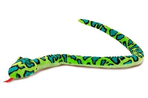 Plyšový had zelený o rozměru cca 150 x 8 x 10 cm. Věk 0+