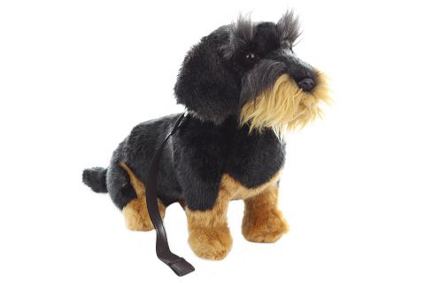 Plyšový jezevčík o velikosti cca 29 x 22 x 11 cm. Délka vodítka cca 20 cm. Věk 0+