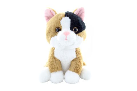 Plyšová kočka o rozměru cca 12 x 16 x 12 cm. Věk 0+