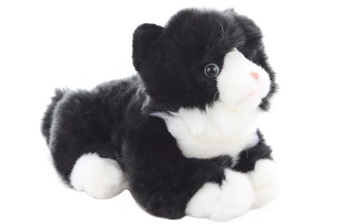 Plyšová kočka zvuková. Po stisknutí vydává zvuky. Rozměry cca 23 x 13 x 15,5 cm (bez ocasu). Délka ocasu cca 9 cm. Napájení na 3 AG13 baterie (jsou součástí). Věk 0+