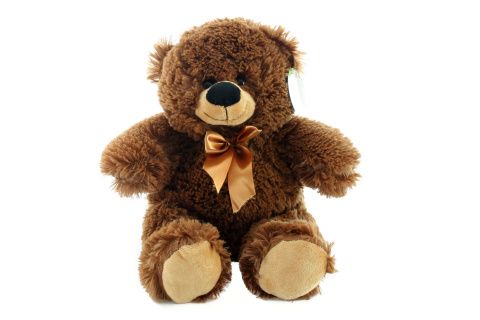 Plyšový medvěd s jemnou plyší o velikosti cca 35 cm (celé tělo), sedící 23 cm. Věk 0+